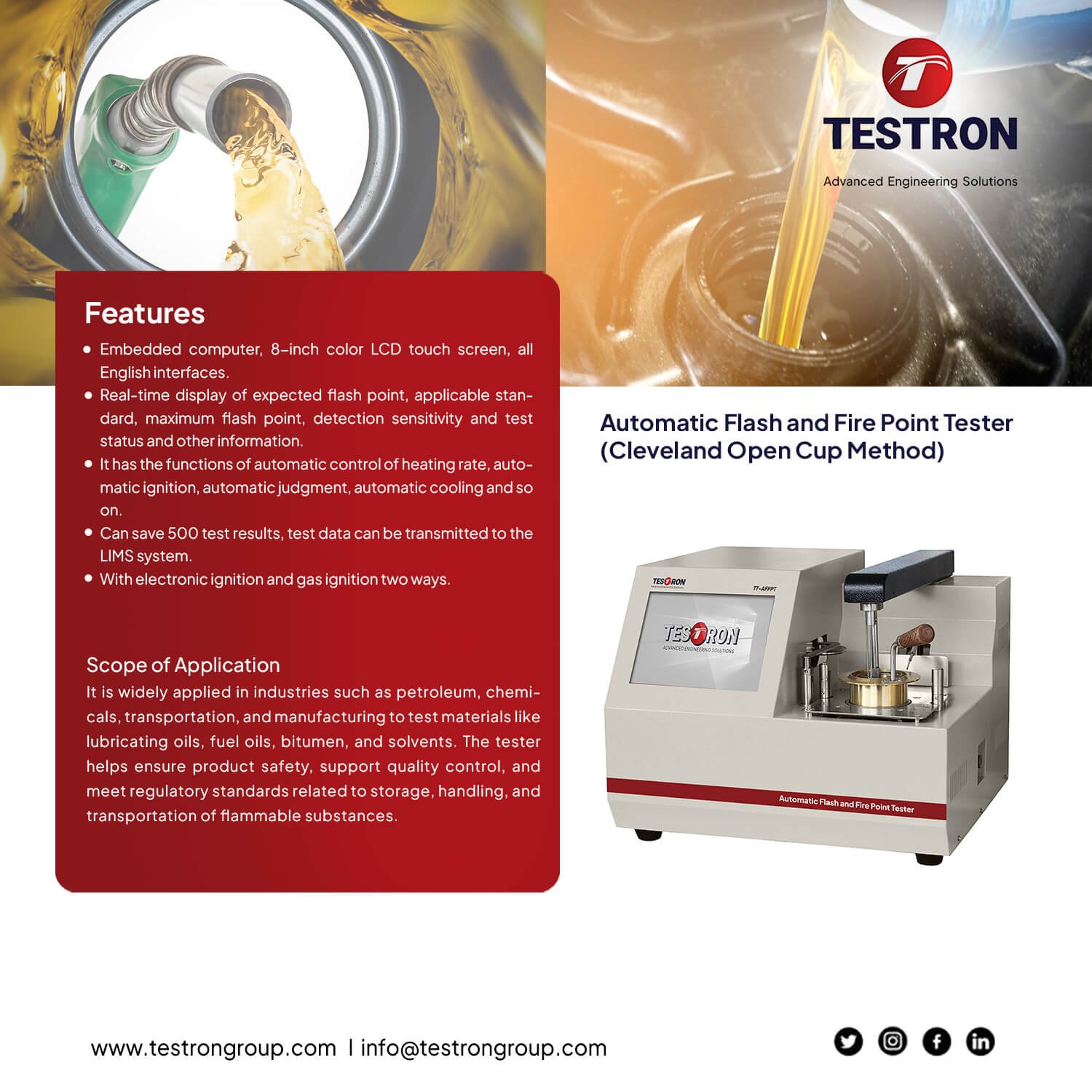 Features of TT-AFPT Automatic Flash and Fire Point Tester (Cleveland Open Cup Tester)
