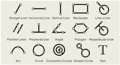 | Measuring Function: | Linear dimensions such as distance, perimeter, area, angle, radian, width, height, and radius elements are measured |